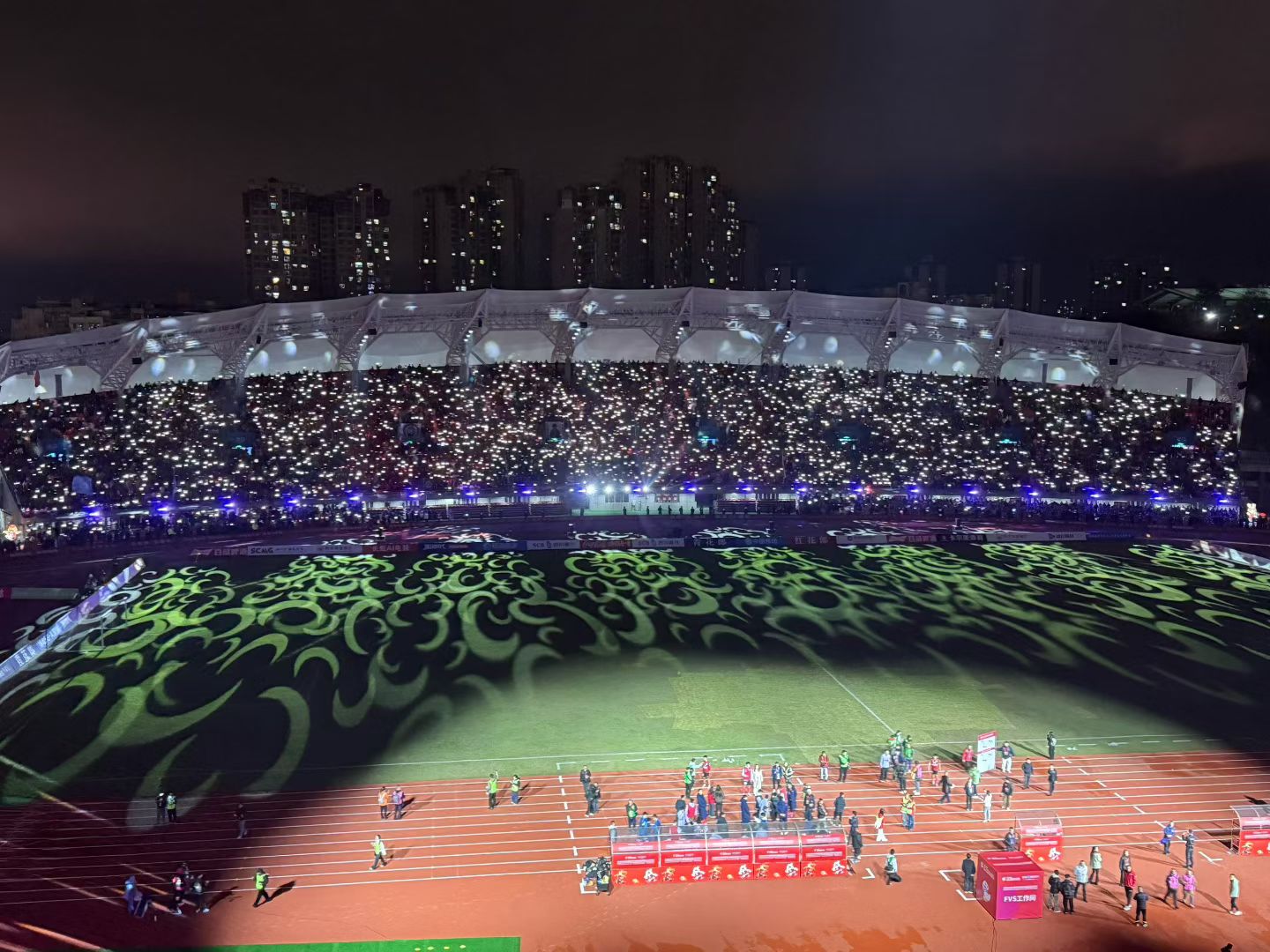 据悉,这次改造升级进行了看台结构加固、膜结构更换、灯光音响更新、跑道更新,主客队、指挥中心、贵宾室及相关功能用房改造,公共卫生间改造,看台座椅更换和新增移动座椅,电梯安装,电力系统改造及消防系统等改造。