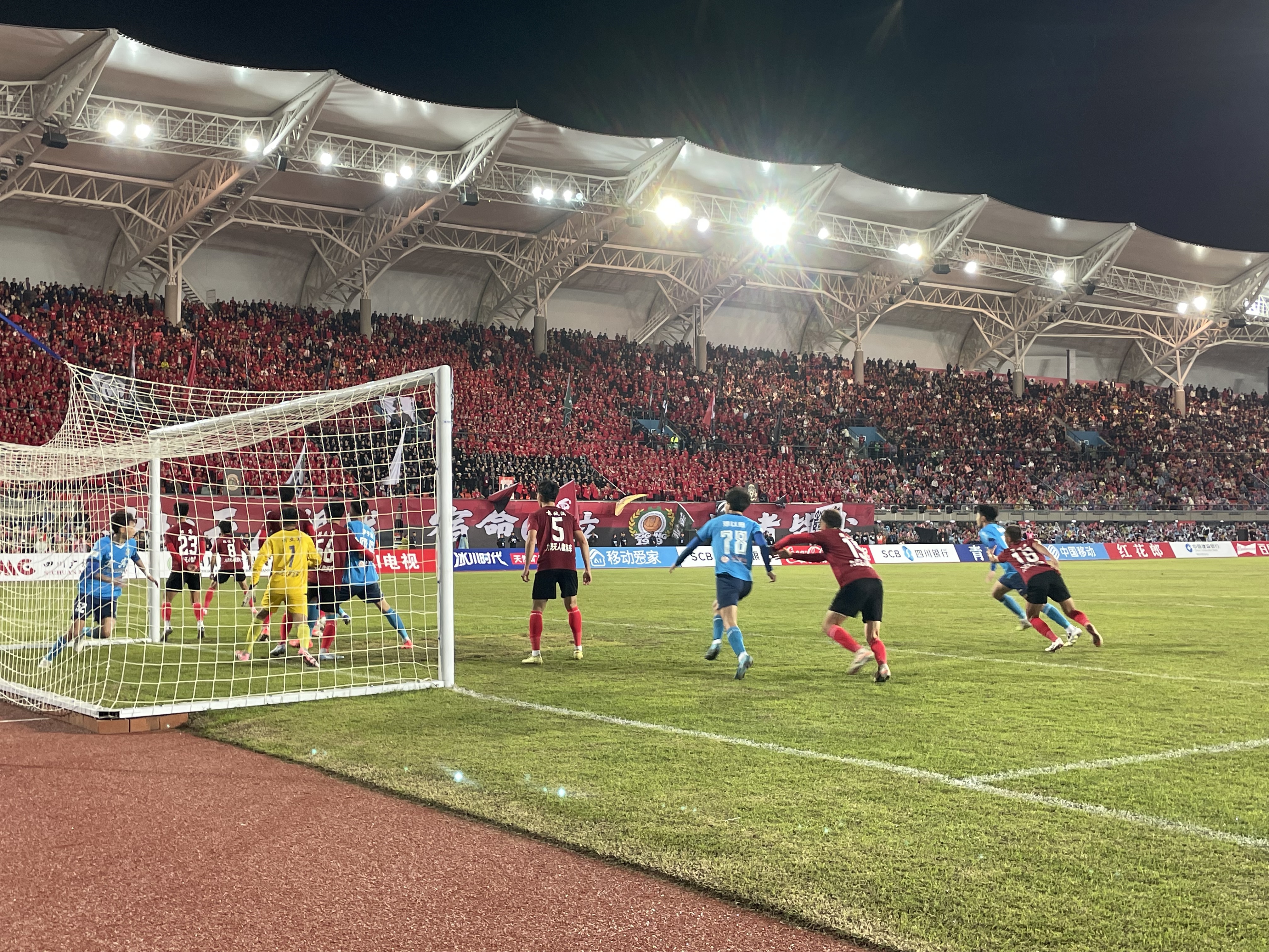 自贡队与宜宾队再次对战的南湖体育中心,已较2025年进行了场地设施全面升级,达标专业赛事要求对标国际足联与川超联赛场地标准,对主场体育场进行全方位改造提升。